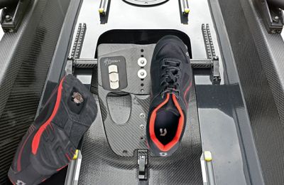 Bei Kentern des Bootes lösen sich die Schuhe von selbst vom Stemmbret - Clicko+ wird mit Fahrradschuhen mit SPS-Aufnahmen gerudert